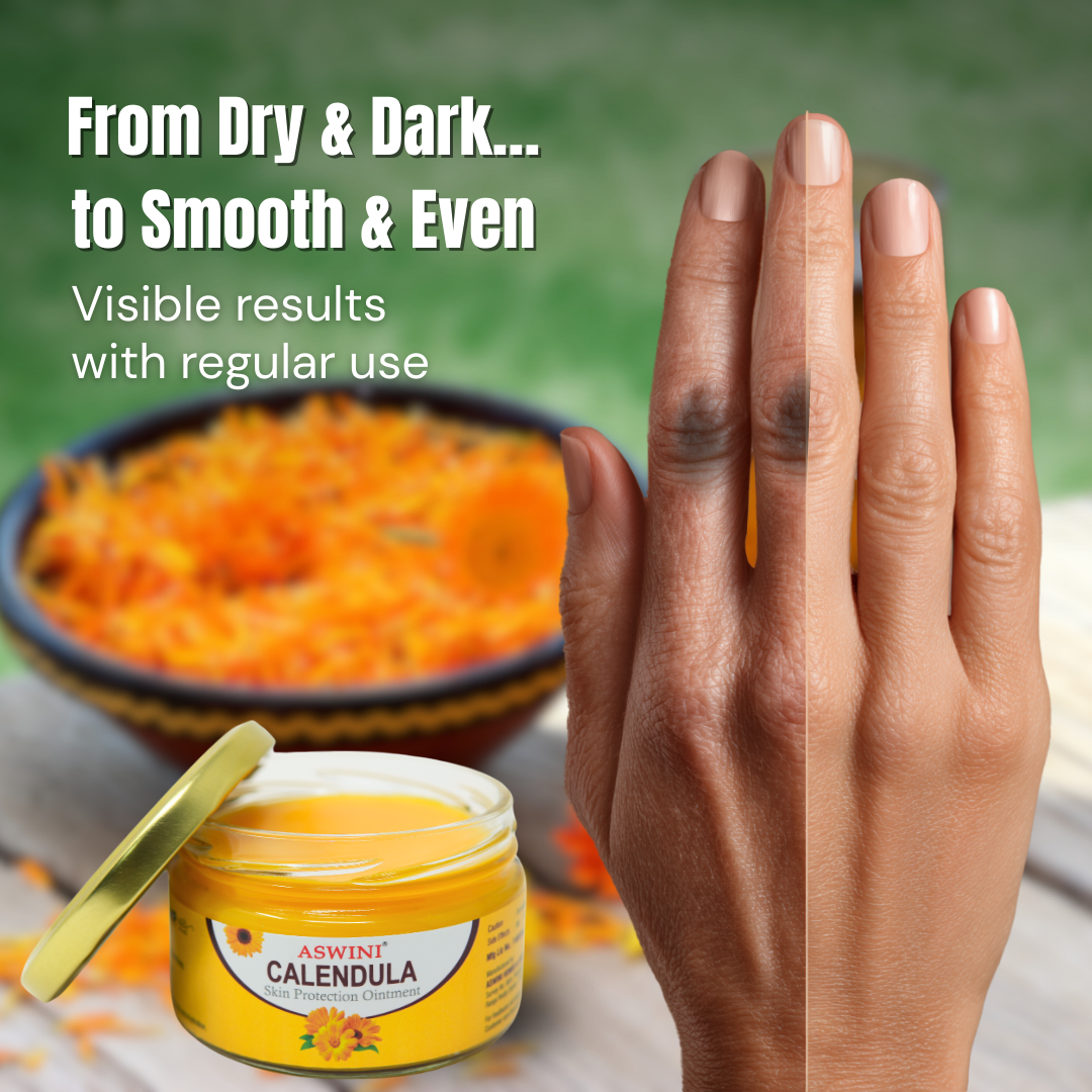 எங்கள் அஸ்வினி காலெண்டுலா களிம்பு, காலெண்டுலாவின் குணப்படுத்தும் சக்தியை பாரம்பரிய ஆயுர்வேத அறிவுடன் ஒருங்கிணைக்கிறது.